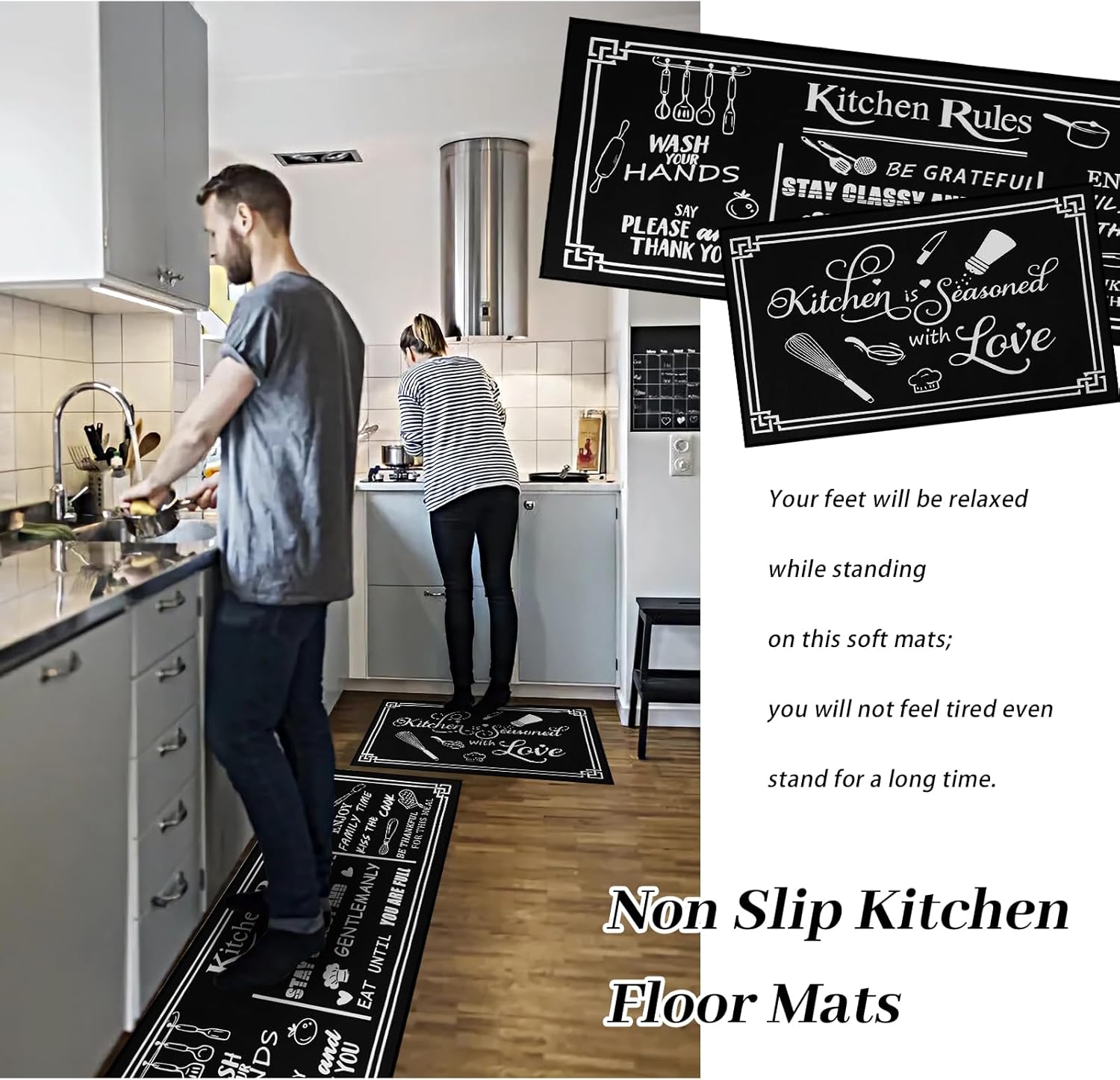 EASY TO CLEAN MATS: These padded kitchen mats are waterproof and non-slip, dirt and grease repellent, durable and easy to clean. Simply wipe clean with a damp cloth or sponge, fade resistant and shrink free, you can use any standard household cleaner or broom to remove dirt and dust, saving you time and effort.