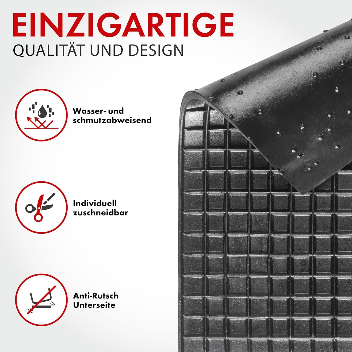 With the rubber mat have dirt in the footwell of your car don’t stand a chance more rectangular. It is suitable for all common vehicle types.The clean solution protected against dirtWith the rubber mat you are purchasing a simple & protective solution from numerous rectangular dirt in the car footwell of your cars. With dimensions of approximately 43×29 cm Fits in any case into your vehicle and is a useful as well as same attractive accessory. Particularly good in winter, snow and mud on the high-quality processed Product quickly and easily clear away, and the carpet in your car stays clean.The rubber mat RectangularOur rubber mat is made from a high-quality material in proven TPR quality standard. It is therefore extremely hard-wearing, and the colour black is an additional plus in to. At the same time inhibit the spikes attached to the rear a universal pad from sliding. This means it is always in place and your car clean and dry.Colour and fade resistantEven for intensive use or sunlight keeps the deep black colour thanks to colour and fade resistance. This looks your rubber mat as new, for longer rectangular.Box Contents 1 x Rectangular Mat Information Universal mat High-quality rubber mat Material: Nitrile Rubber (NBR) The underside has non-slip spikes Anti-slip qualities and Easy to clean Retains colour Extremely well and is highly light-fast In accordance with EU directivesBox Contents: Single matsColour: BlackUse: without Rug useCan be cut to fit: no